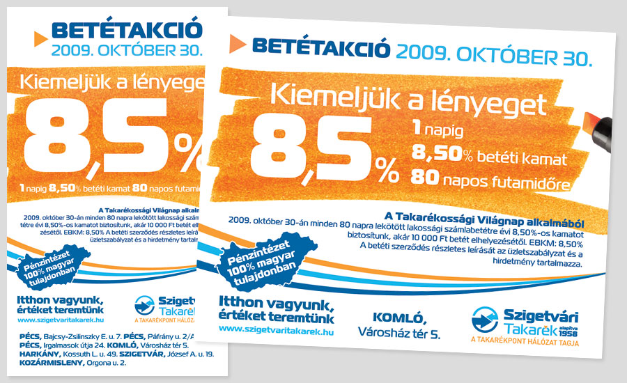 Reklám kampány - Szigetvári Takarék, Betétakció 2009